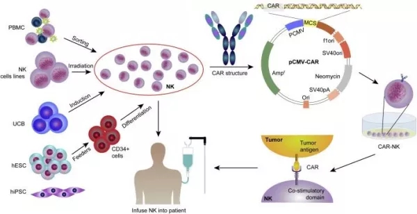CAR-NK細(xì)胞的來(lái)源和產(chǎn)生過(guò)程