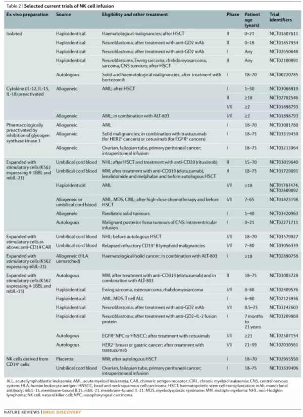 4、NK細(xì)胞臨床試驗(yàn)一覽